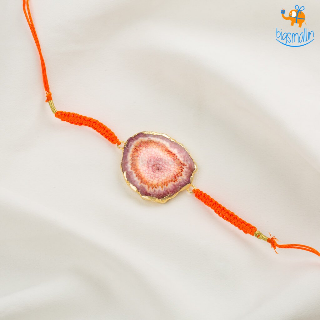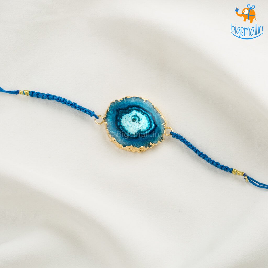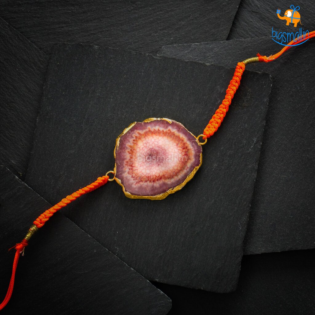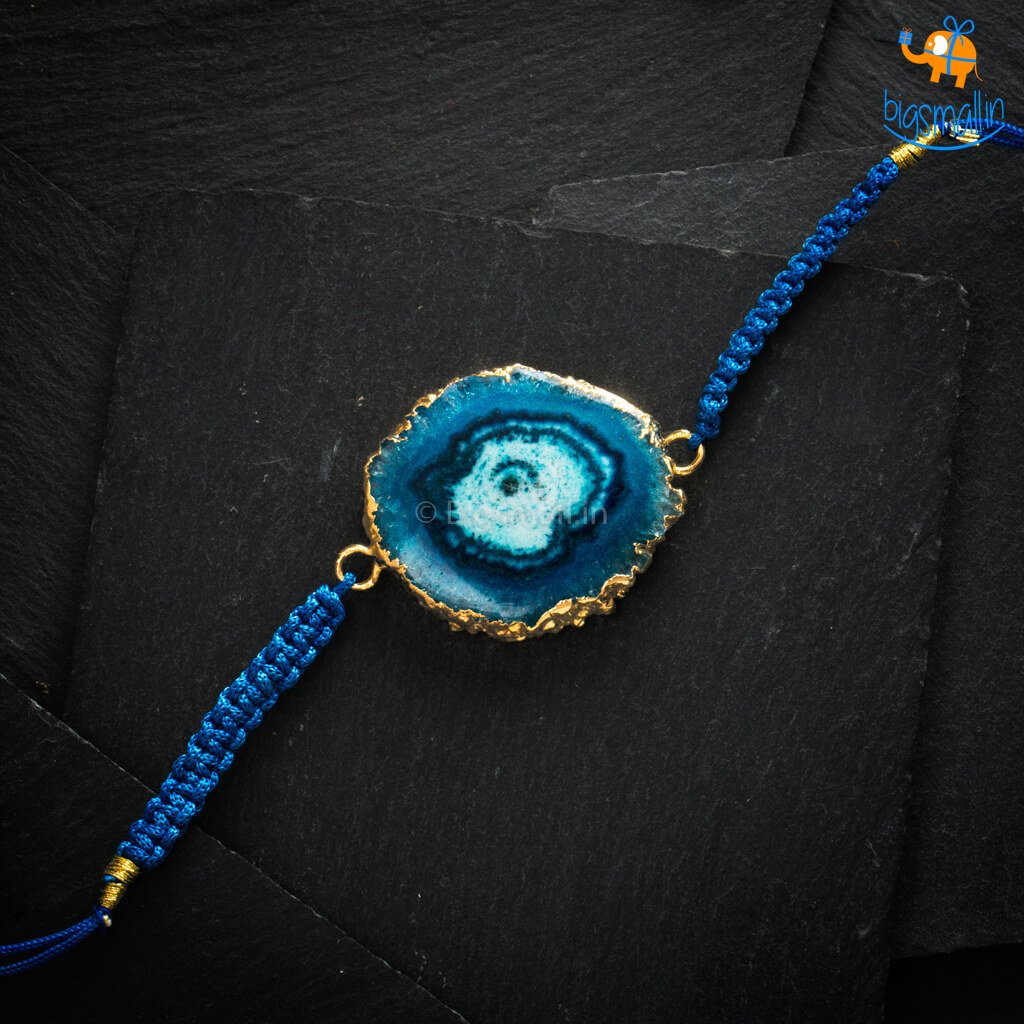 Yes, that's what brothers and this beautiful stone have in common, they both create a sense of security and safety. Agate stones are also said to calm oneself and heal inner tension. Steer away from regular rakhis this Raksha Bandhan and get your brother the best rakhi he deserves. Celebrate your undeniable strong bond with this unique rakhi. The rakhi is threaded in the beautiful bright coloured string. The stone size and shape may differ slightly as they are natural stones.