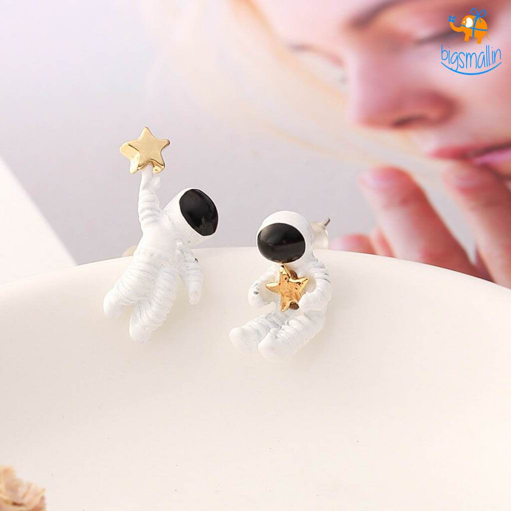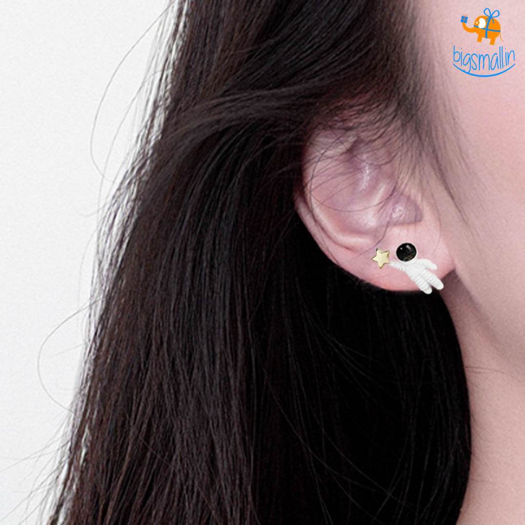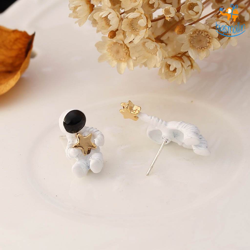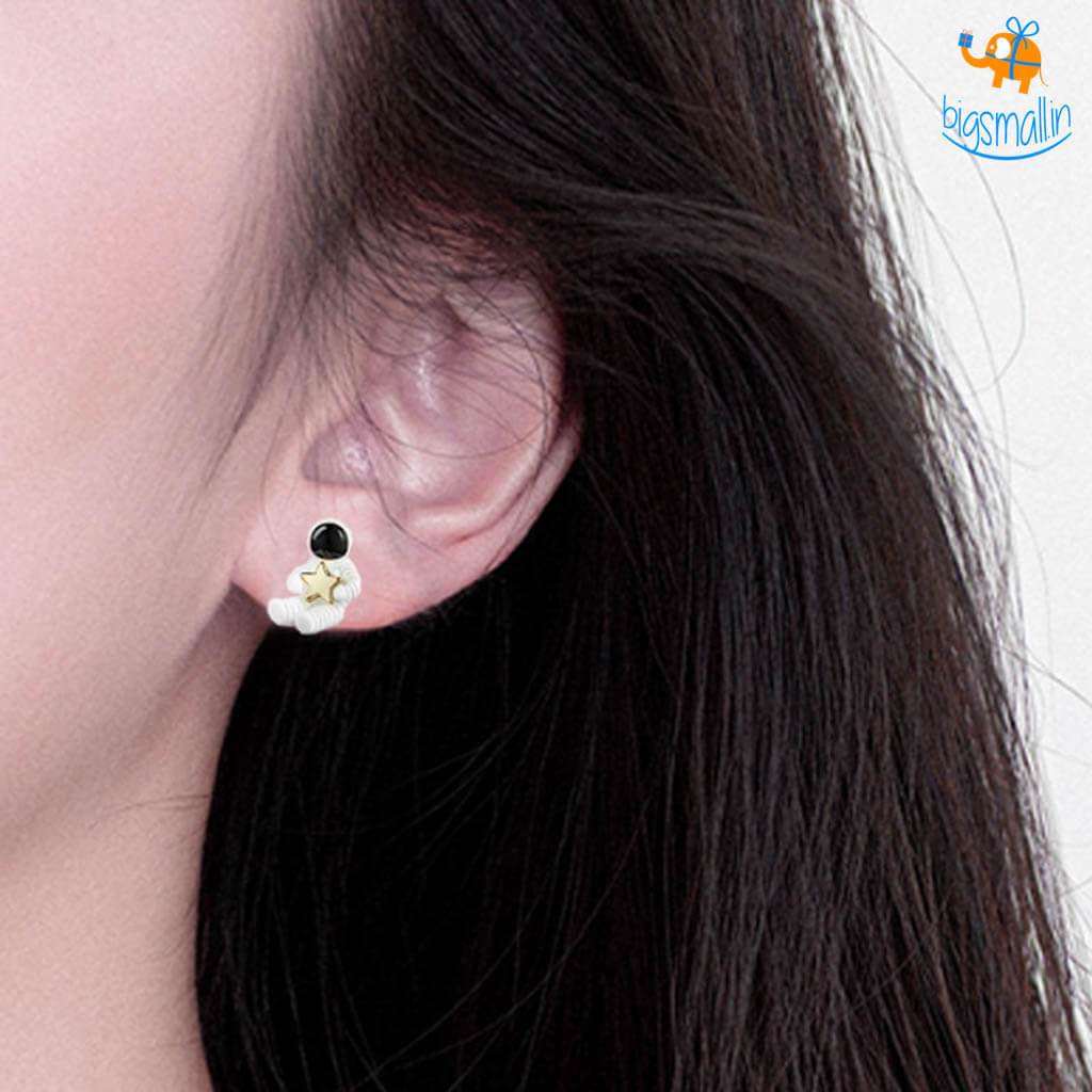 - Astronaut with star themed metallic ear studs