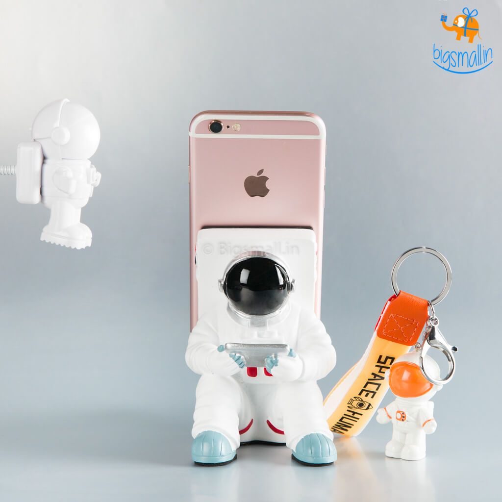 - Inclusive of a Geek Astro Mobile Stand, a Spaceman 3D Metallic Keychain, and an Astronaut USB Night Light