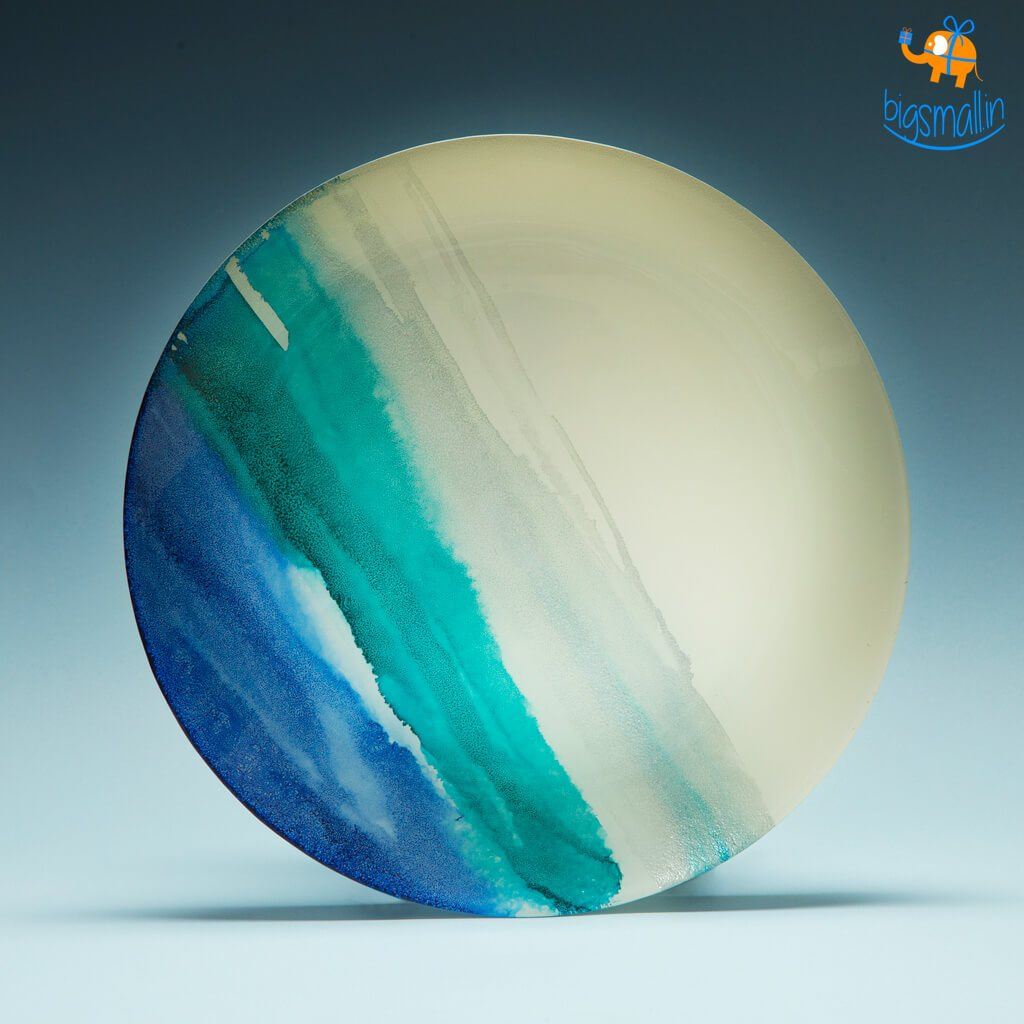 When you serve your culinary extravaganzas to your distinguished guests, the plates matter as much as the dishes. Ensure that you serve your starters, appetizers or main course in nothing but the best. Presenting the hand-finished Azure Blue Artisan Large Plate. It can also be used as a home decor item & framed on the walls. An artisan plate is hand-designed, in limited quantities often using traditional methods. One can be assured of the quality & exclusivity of the product. Make a housewarming gift of it to close friends or bring home one for your plate collection! Imagine hosting beach parties and watching the sunset with your loved ones, enjoying your favourite snacks out of a plate that matches your vibe... Now isn't that just beautiful?