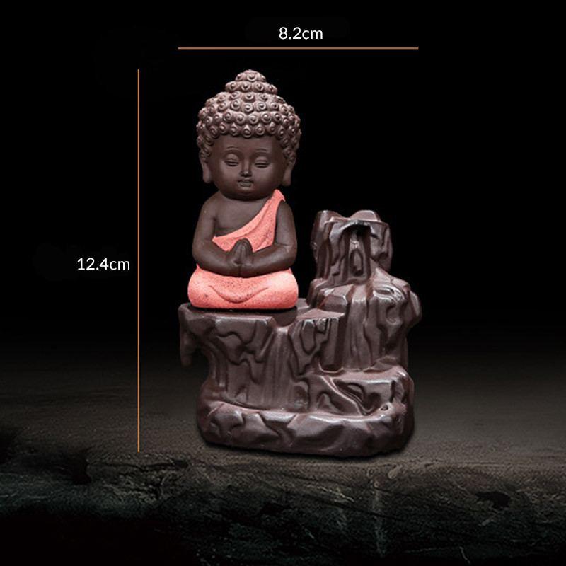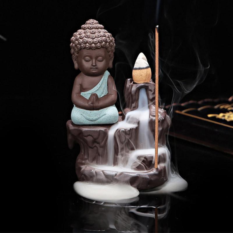 A back-flow incense burner that creates an illusion of a smokey waterfall. This piece of art has lord Buddha sitting and meditating beside the waterfall. Simply place an incense cone at the top of the waterfall, and with the cone's special properties, the smoke starts to flow in reverse direction, that is from top to bottom, and in-turn creates a beautiful smokey waterfall. With scented smoke flowing in waves beside the Buddha, this makes the perfect housewarming gift for any home!