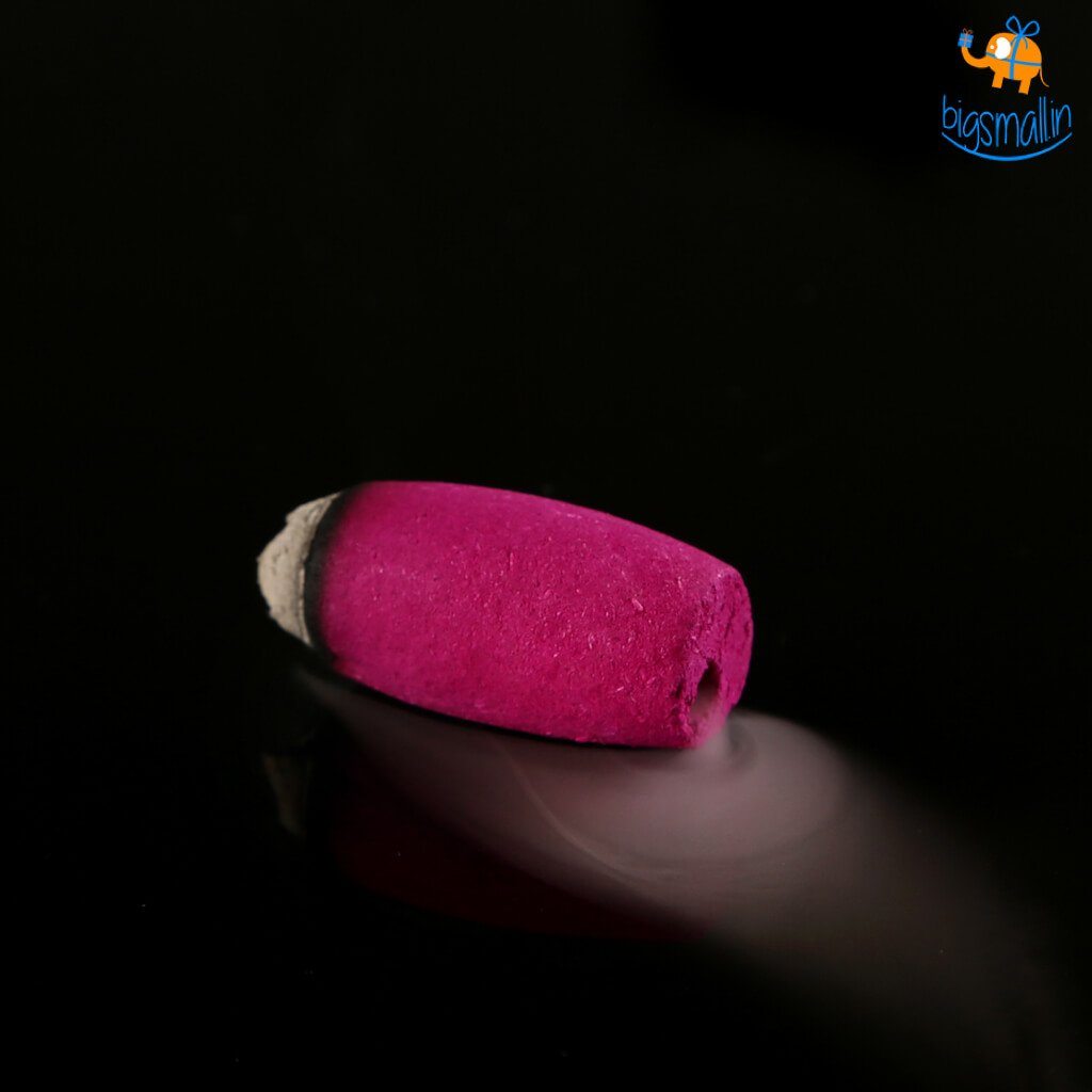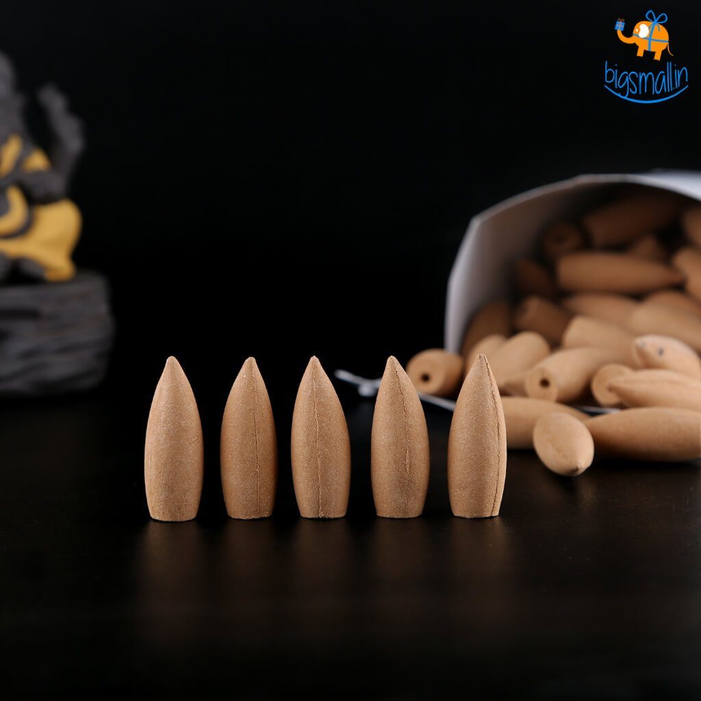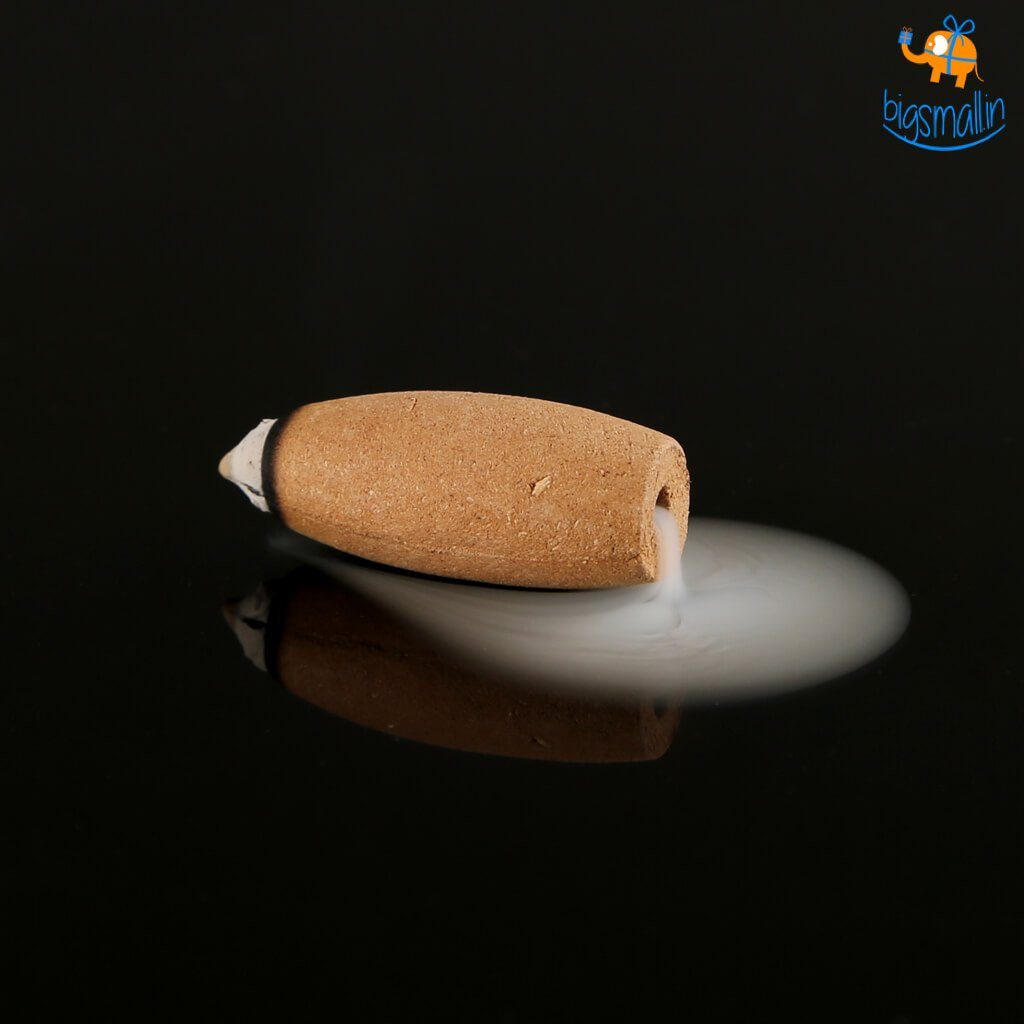 These backflow incense cones when lit produce the smoke in reverse direction, i.e. top to bottom creating a beautiful waterfall smoke effect when combined with the right figurine (eg. waterfall incense burner). Each cone is dry and has a hole at the bottom, which acts as an outlet for the smoke.