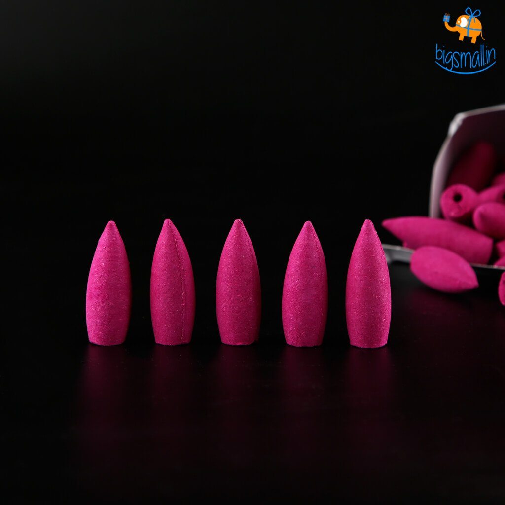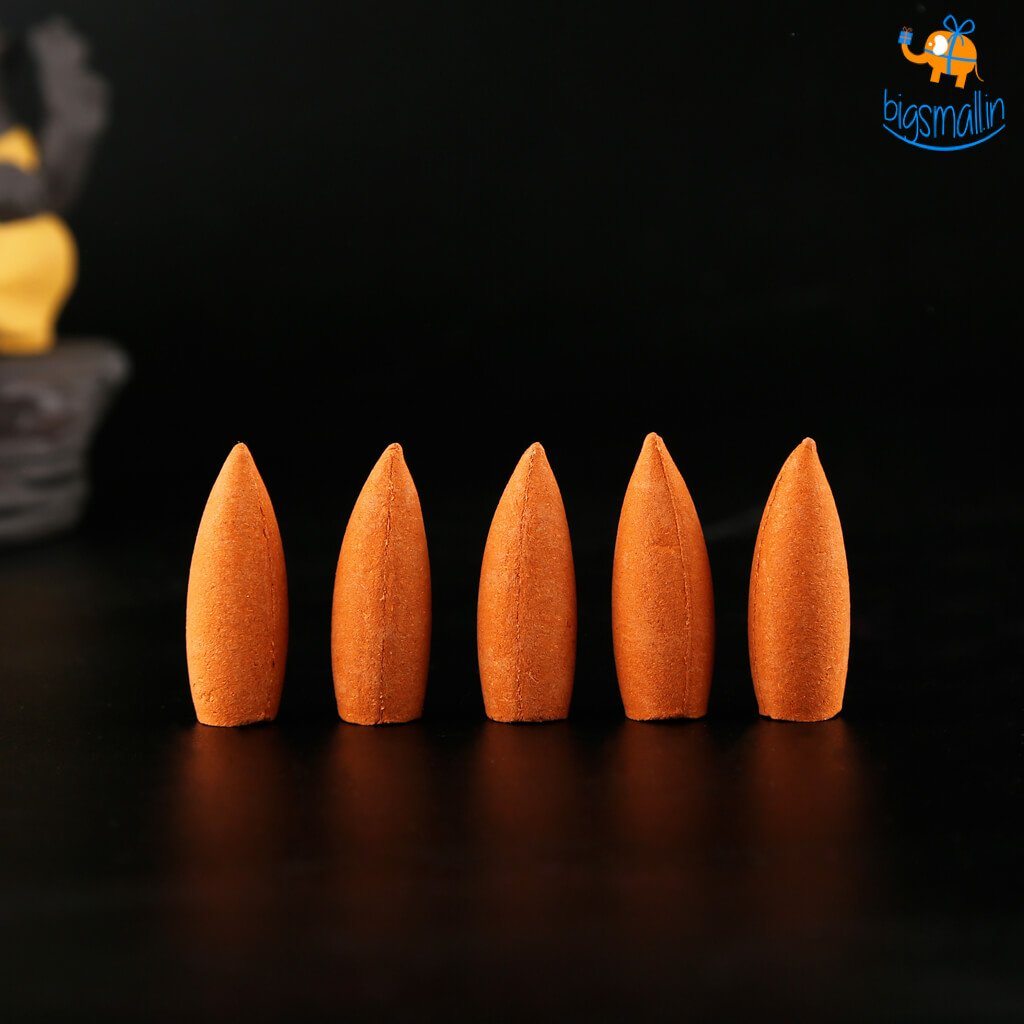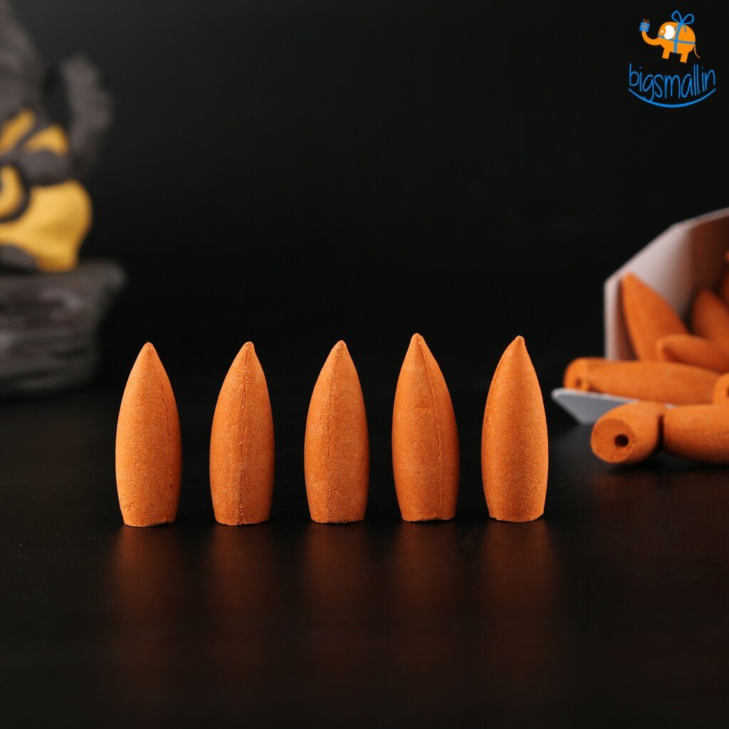 These backflow incense cones when lit produce the smoke in reverse direction, i.e. top to bottom creating a beautiful waterfall smoke effect when combined with the right figurine (eg. waterfall incense burner). Each cone is dry and has a hole at the bottom, which acts as an outlet for the smoke.