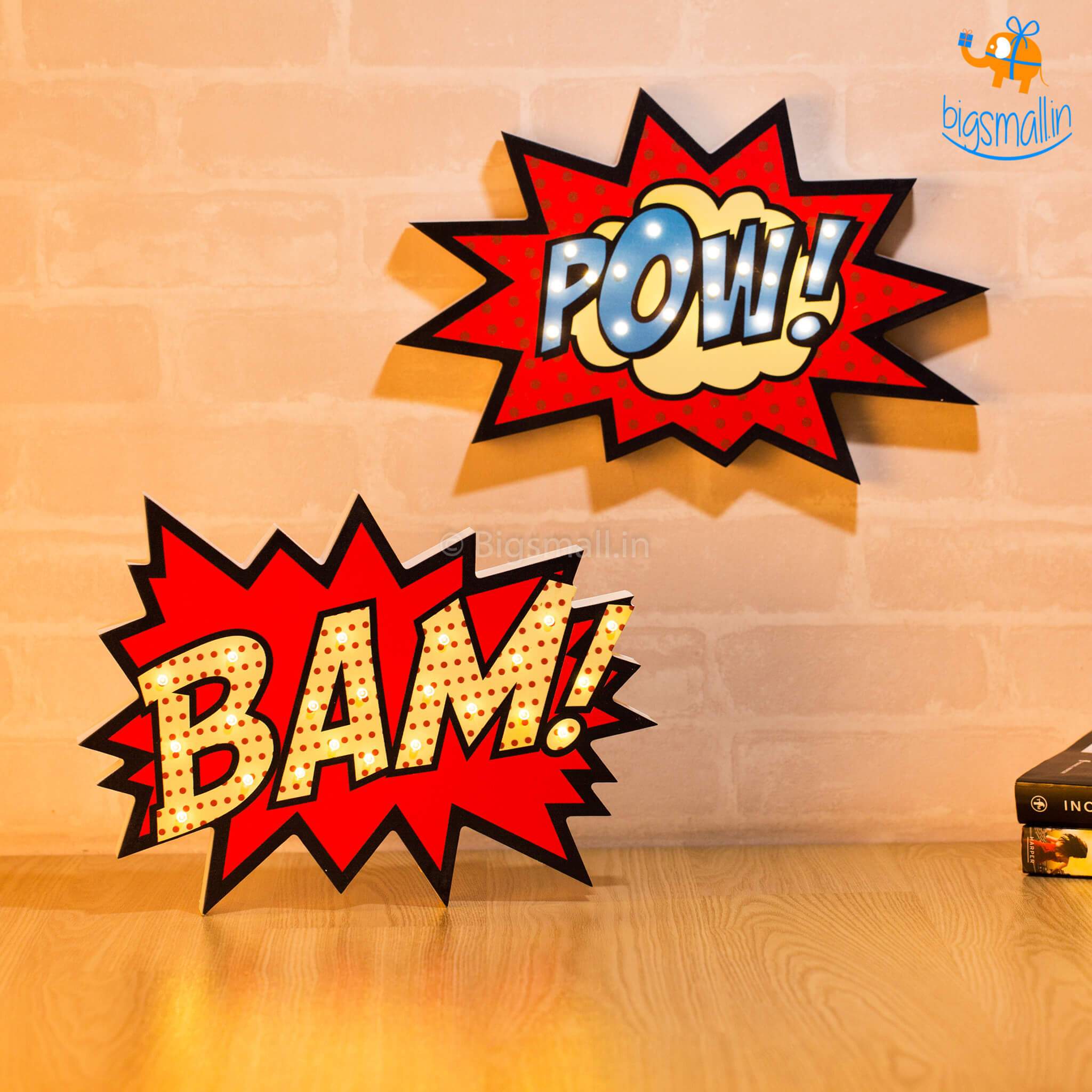 Yep, we heard ya superhero freaks! Presenting the super awesome BAM! and POW! Comic Speech Bubble LED Lamps. Easy to hang on your mantle, table, and dresser with its integrated hanging hooks. Wireless, there will be no ugly wires hanging around the doodle. Light up the life of a superhero enthusiast with the Bam! wooden 22 LED lamp and/or Pow! wooden 19 LED lamp.