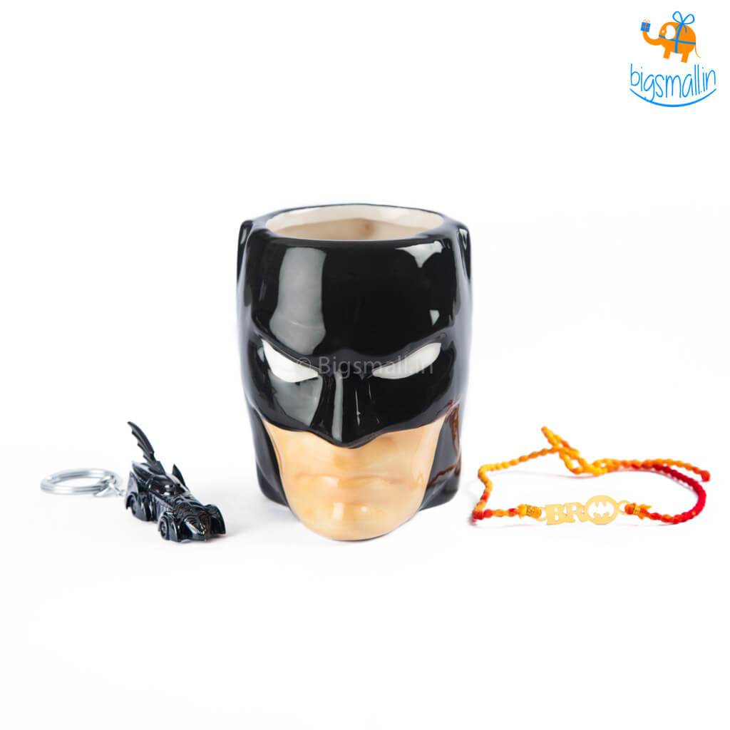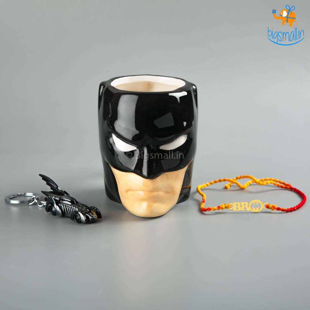1 x Batman Rakhi Gift Set (1 x Batman Bro Rakhi, 1 x Bat Coffee Mug, 1 x Batman Car Keychain)