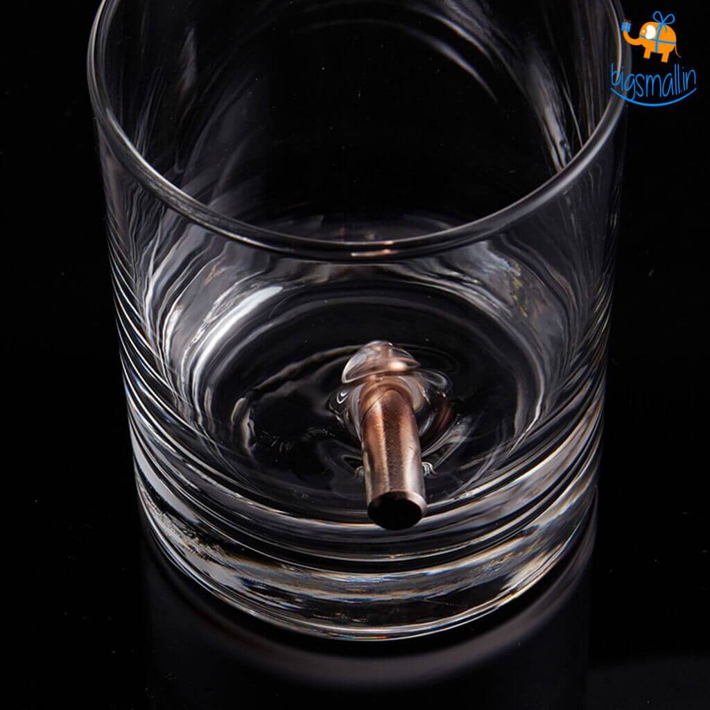 - Whiskey Glass embedded with a real.308 bullet