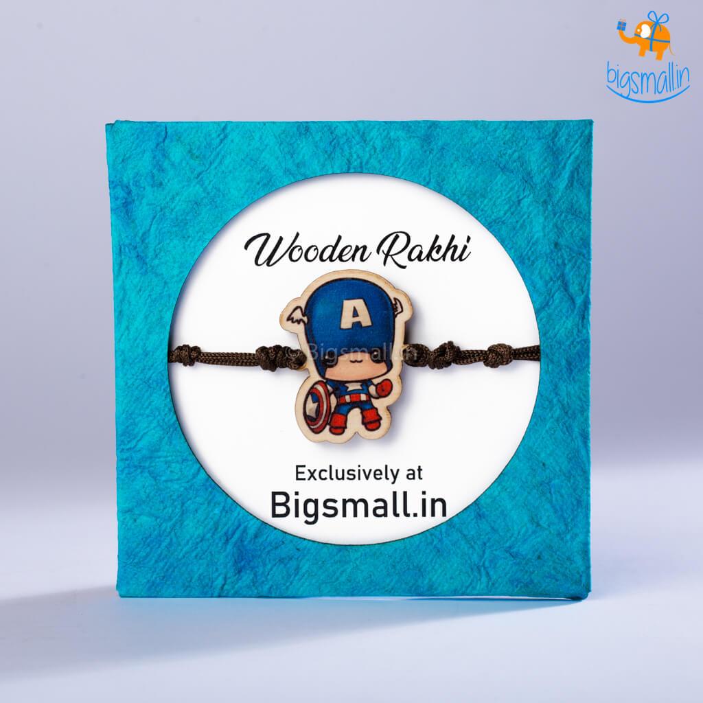 Get on board with the latest trend of fancy rakhis. Why tie your brother the same old simple thread when you can get him something unique and quirky. Celebrate your undeniable strong bond this Rakhi season with this personality-specific Rakhi. Captain America Wooden Rakhi features our beloved Captain in chibi form. The best part about the Rakhi is the packaging - it's handmade. So you can send the Rakhi to your brother living in a different city without any worry. It'll be just like you are there with him.