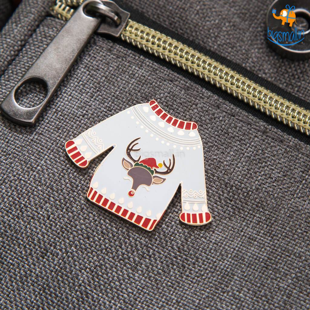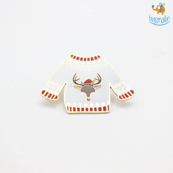 Spread the cheer this Holiday season with the super adorable Christmas Sweater Lapel Pin. Reminiscent of the warmth inherent in each and every Christmas present from our loved ones, this classic red and white sweater with a reindeer built right into it, is the stuff Christmas fables are made of. Make a gift of warmth and joy to loved ones with this cute lapel pin.