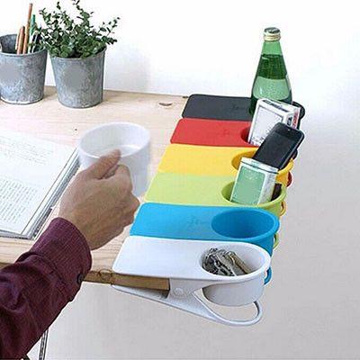On the side of the table or clipped to any furniture, the cup & drink holder is a smart accessory to have with you. Apart from the usual coffee and drinks, the holder can be used for your mobile, keys, stationery item, etc. The holder has a hole that can be used for your charging cables to pass through. Simply clip the holder conveniently onto a table and use the holder any way you wish. It can also prevent accidentally spilled beverages and help you keep your desk clean and stain-free.