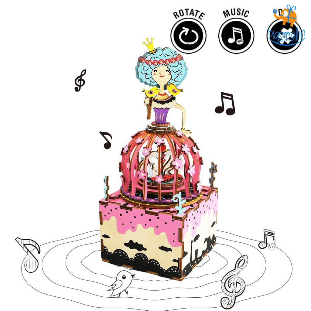 Smile along with this cute little princess while you listen to the tunes of Swan lake. The music box is mechanical and the upper half of the box (the princess) rotates while the song is playing. The bright colors and the music is sure to lift your spirits up. A great gift for a kid or for somebody who still loves to sleep to the sound of a music box. All the material required is provided in the box, all you have to do is follow the instructions step by step and let all the creative juices flow.