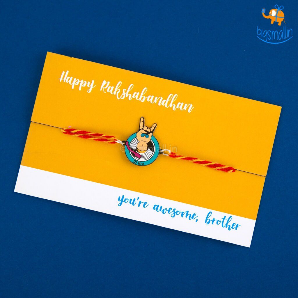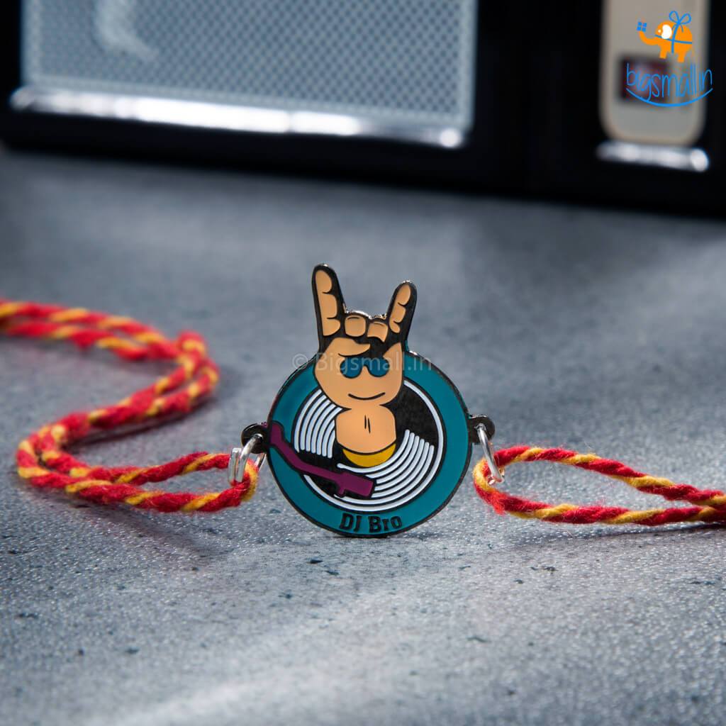 If your brother has the crowd swaying to his beats, show your appreciation for his musical gift with the personality specific DJ Bro Rakhi. With a cute brass embellishment in the form of an upturned swag fist on a console that says DJ Bro, you just know that you have found the perfect rakhi for brother dearest.