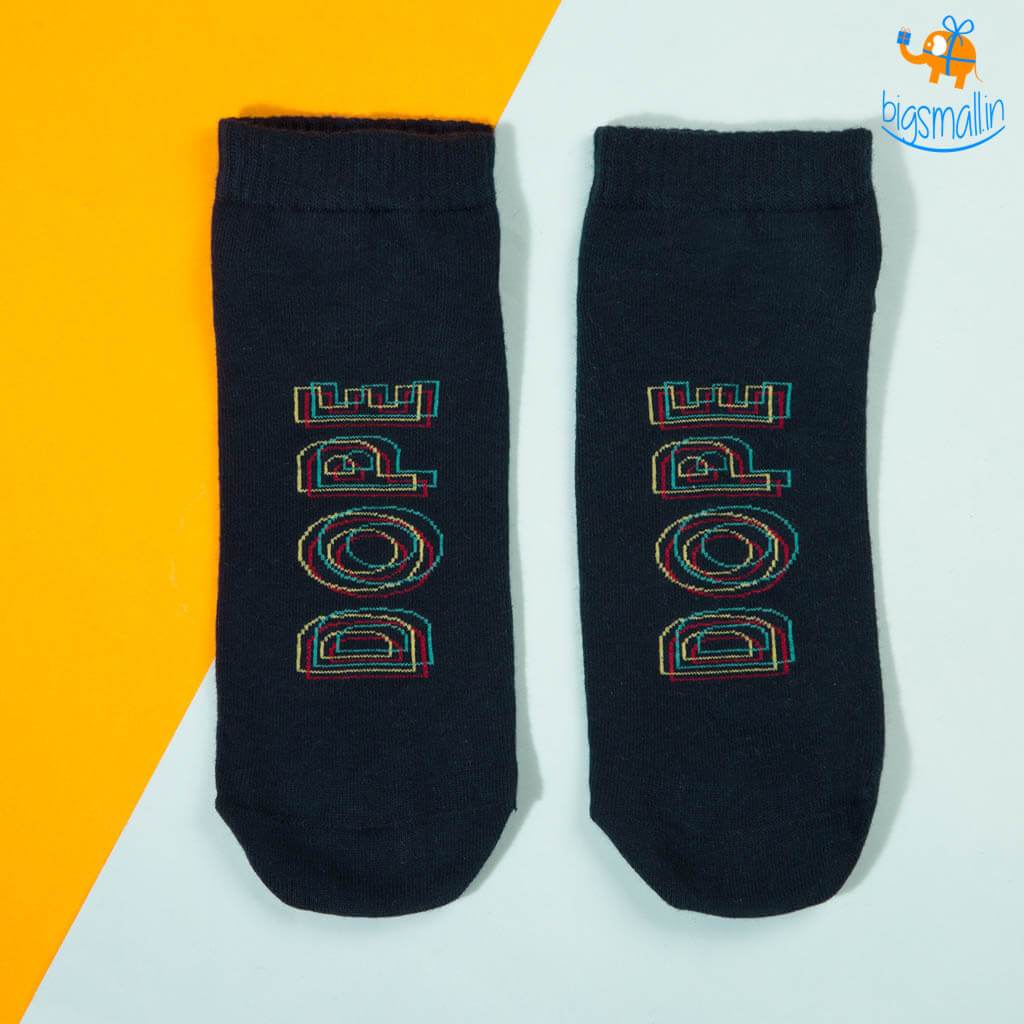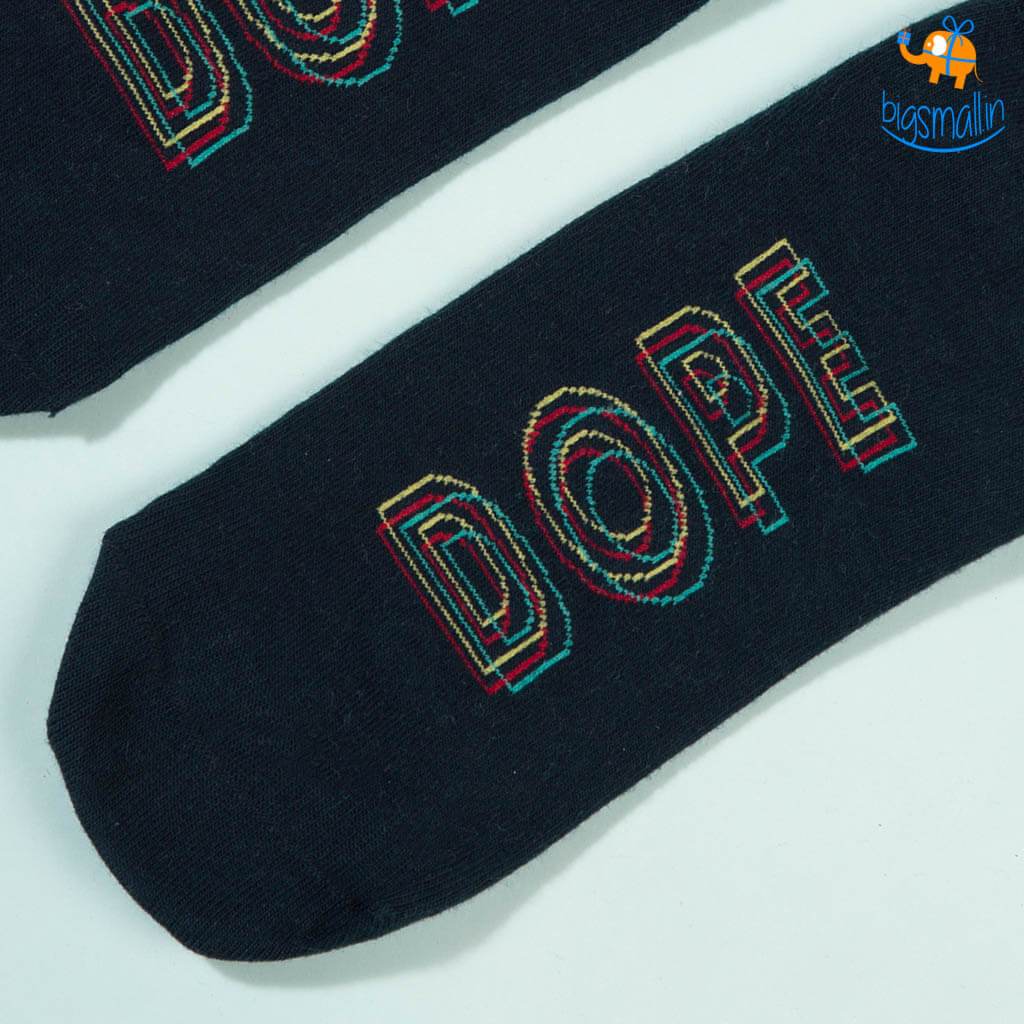 So you think you got what it takes?! Flaunt your dope self with these ultra cool unisex Dope Socks. A dope soul needs pretty dope gear to hustle it out. Armed with these cool navy blue socks with the word Dope stitched on them, you are more than ready to take on the world! Make a gift of it to a friend of yours who loves creative socks or buy a pair for yourself. Made of premium quality soft combed cotton with stretch spandex, your feet breathe easy and yet say warm and toasty.