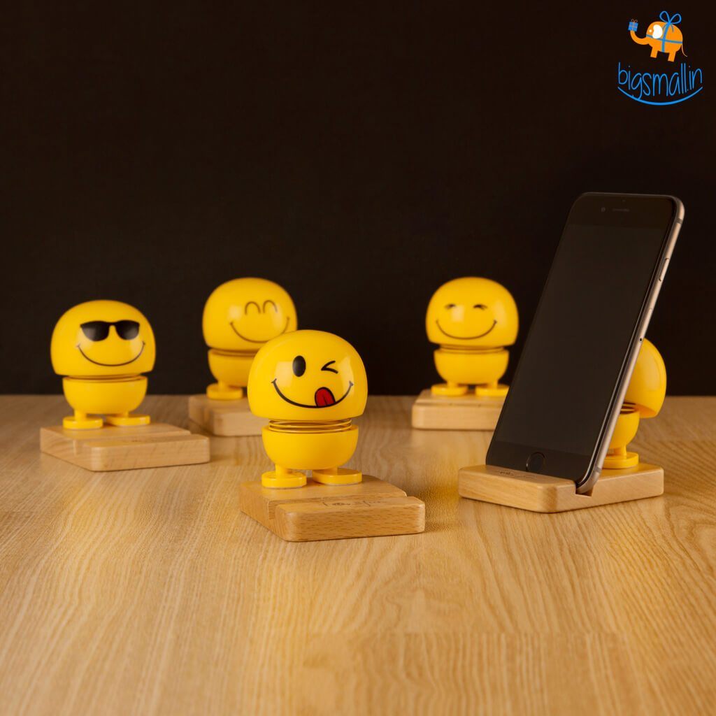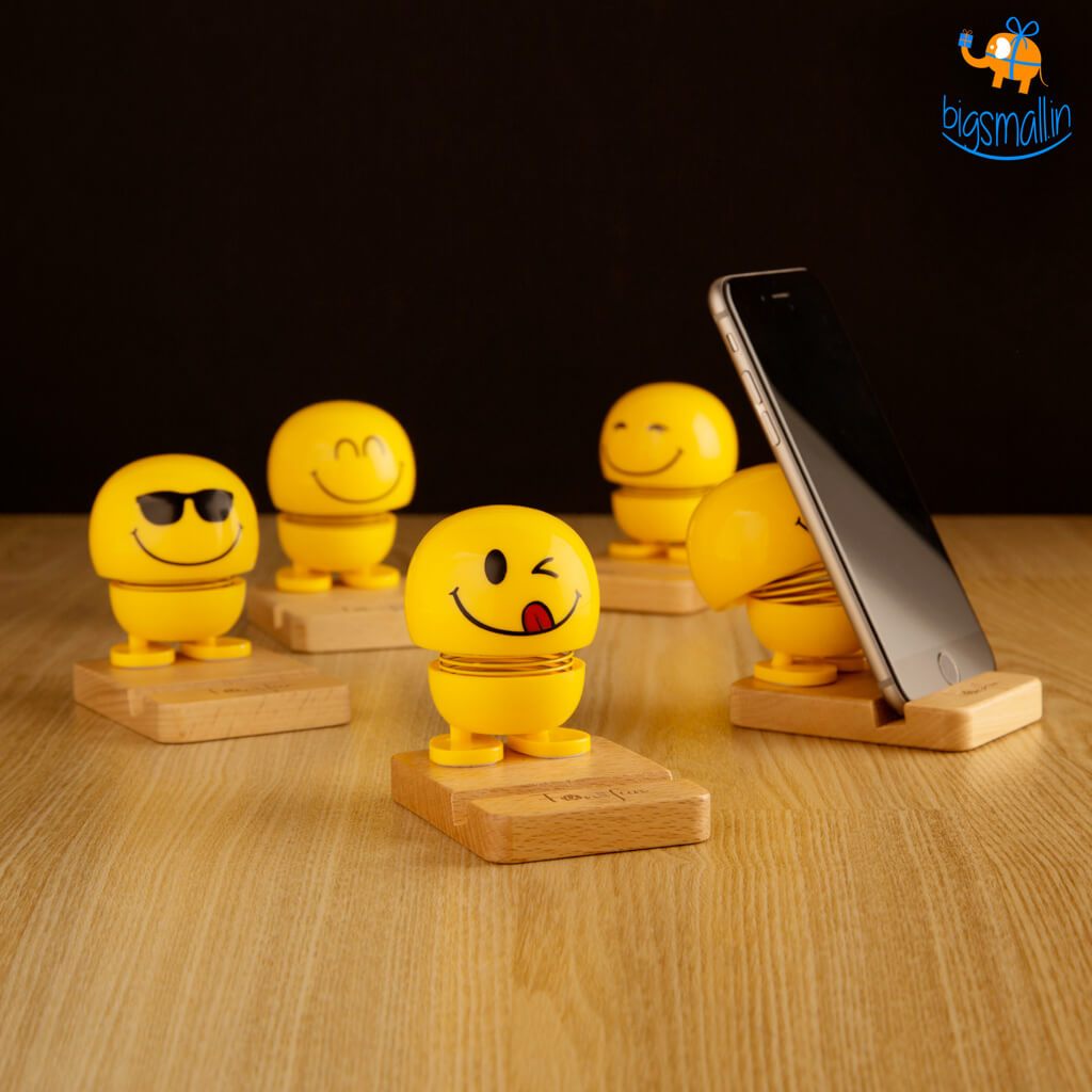 Everyone loves emojis & can't seem to get enough of 'em! We present to you the quirkiest functional take on emojis with the Emoji Wooden Phone Stand. Choose from a range of 5 variants or be greedy & order them all! Stock your phone horizontally or vertically. Stands firm on most flat surfaces such as workstation, car dashboards, etc. The box comes with a 3M Double Coated Tissue Tape so that your emoji phone holder sticks to the surface you choose. The Emoji heads come with a good quality spring & bobble away adorably. Jazz up your work desk with these fun collectibles!