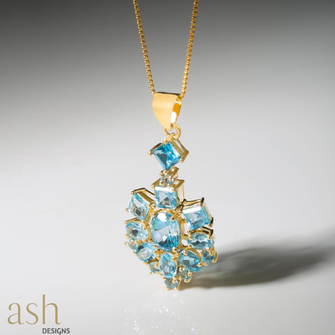 - Blue Topaz set in gold plated silver