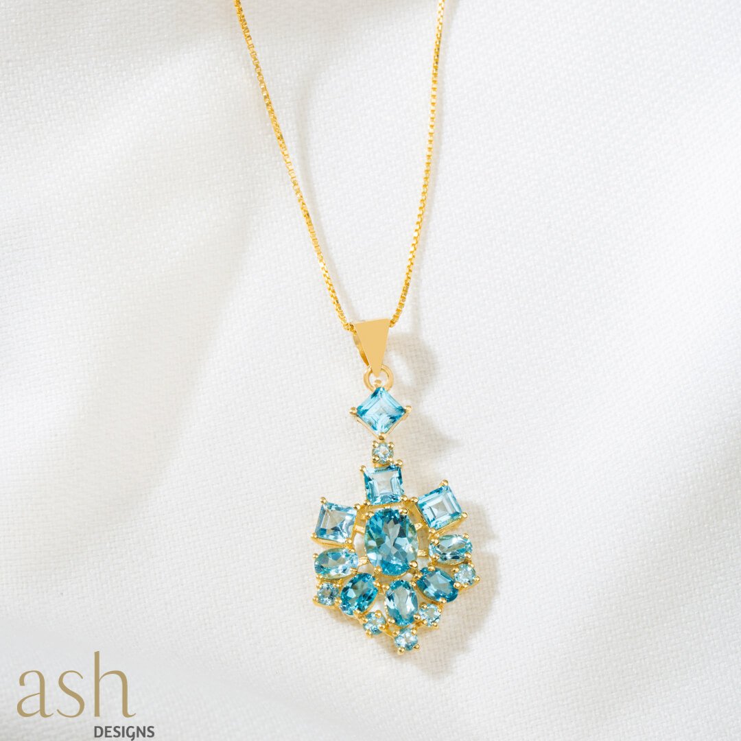 Whimsical and beautiful, this enchanting pendant features a lucid blue topaz set in gold plated silver. The pendant is perfect to pair with your little black dress or cocktail attire. Surprise your wife or girlfriend on her birthday with this beautiful gift.