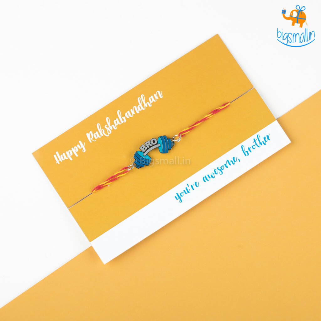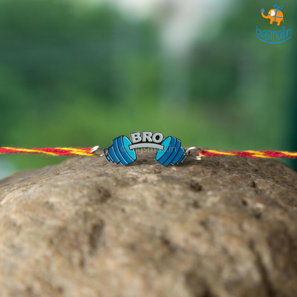 If that is your brother's first criteria for making every decision in life, then we have the perfect rakhi for him. Presenting the Fitness Freak Rakhi, that has a brass sheet embellishment depicting the torso of a fitness freak guy lifting pretty heavy weights with ease.
