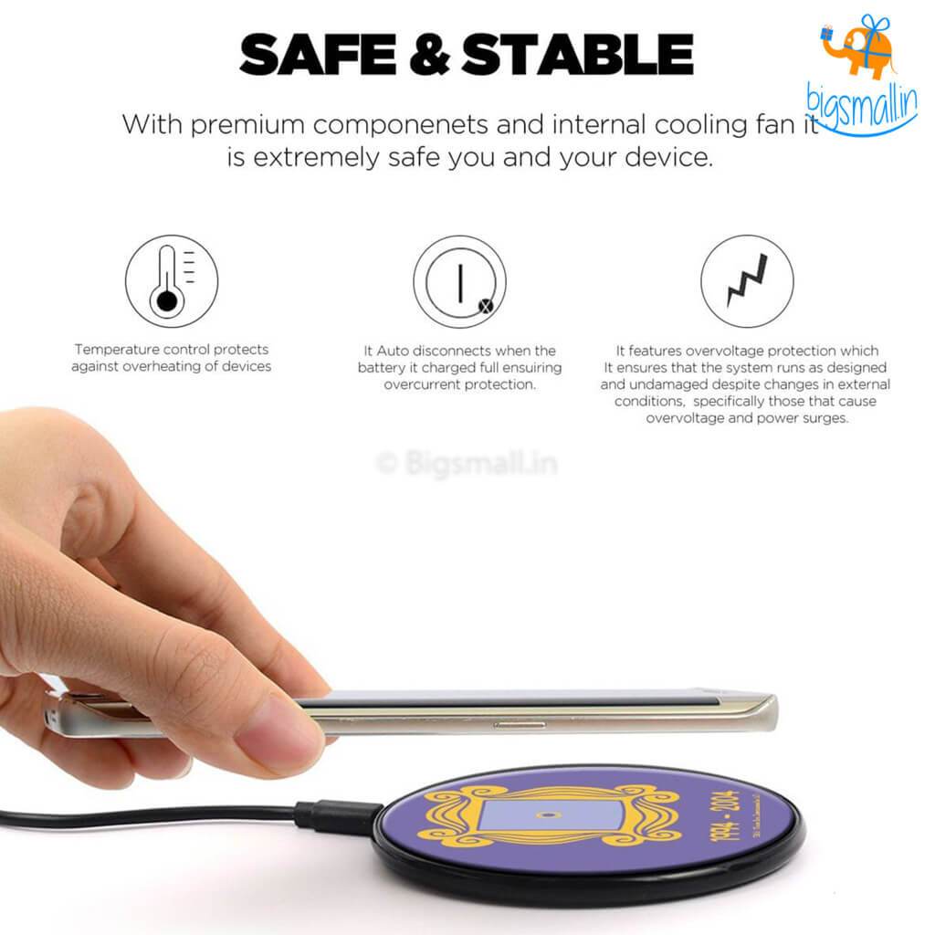 Presenting perfect gift for the F.R.I.E.N.D.S fans who are always running low on battery, Friends Door Qi-compatible wireless charger. A fast-charging cable-free solution for charging phones compatible with wireless charging, this one ranks high on functionality as well as rocks the style quotient. All one needs to do is place the phone on the charger in any orientation and it starts charging instantly! It works with all Qi-compatible smartphones and is just 7mm thick and looks striking on the desktop. It emits an awsome ambient white light while charging. It also has a smart power off feature which turns off the charger once charging is complete to protect against over-charging. Made using premium components, it has a built-in chip security voltage protection which helps in preventing over-voltage, over-temperature, over-current and short-circuit. You can place your phone along with your phone case (up to 5mm only) and it will charge. With its amazing looks, it is not just a wireless charger but also a statement piece.