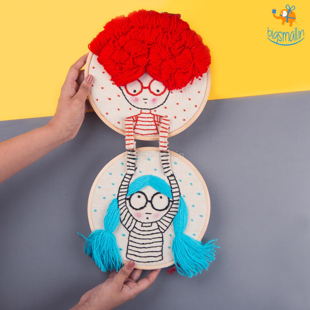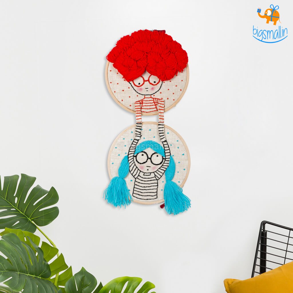 Presenting traditional art and a relatively new creative way to present it. The friends' embroidery hoop art will light up any corner you decide to hang it upon. The embroidery is done with bright colored threads on an off-white fabric, making the design pop. The colorful hairs make the design look more cheerful. You can easily hang the hoop with the support of the screw and nut. The hoop will look great placed on a bookcase or hanged above your coffee table. Gift the art to an embroidery enthusiast or somebody who likes to display decorated textiles in their home.