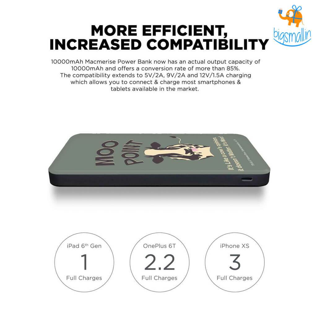 Joey's explanation for all things nonsensical suddenly made sense when he gave the Moo Point theory, and we couldn't help but nod along, simply because it made so much sense! F.R.I.E.N.D.S fan we got you a treat that is simply irresistible, presenting the Friends Moo Point Powerbank - 10000 mAh. A portable power charger, it comes with 2 output USB ports which enables one to charge two devices simultaneously. The product comes with a 6 months warranty card applicable from the date of purchase. It can juice up your phone 2-4 times depending on the latest smartphone. The LED notification gives an indication of the remnant energy. It also doubles up like a torch which can be turned on with the long push of the power button. The power bank can be used to charge any electronic device that can be juiced up using a USB. So you can use it for charging not only your phone but also other devices like your smartwatch, digital cameras, etc. The best part about the product is its awesome skin! The high-quality razor-sharp design on the power bank makes your device stand out amongst the rest.