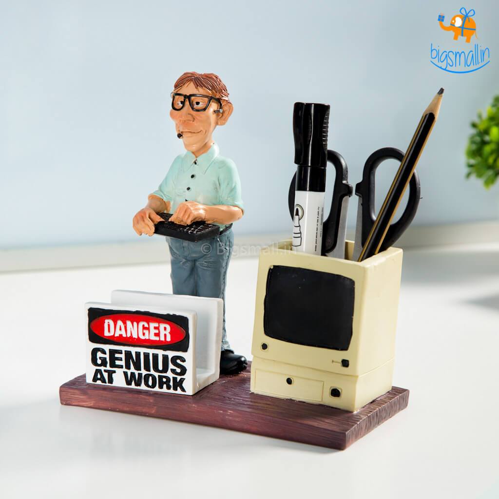 Presenting a fun desk accessory for every geek out there. The Geek Stationery cum Card Holder consists of a coder standing behind a designated cardholder and a stationery pot creatively designed in the form of a computer monitor. Make a gift of it to an engineer boyfriend or a coder friend of yours.
