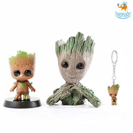 - Contains the Groot Solar Powered Bobblehead, the Groot holder, and the pop Groot keychain