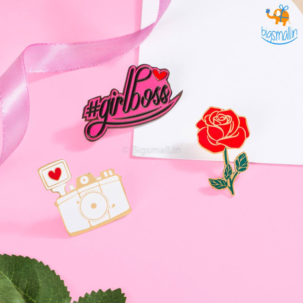 Get your girlfriend something special this love day. This lapel pin set includes 3 beautiful lapel pins all in different designs. For the boss she is - girl boss lapel pin is the perfect pin. If she likes clicking pictures, the white camera lapel pin will be perfect to decorate her camera strap or bag and well you never need a reason to give her a rose, do you? Get the set and express your love this Valentine's in a unique way.