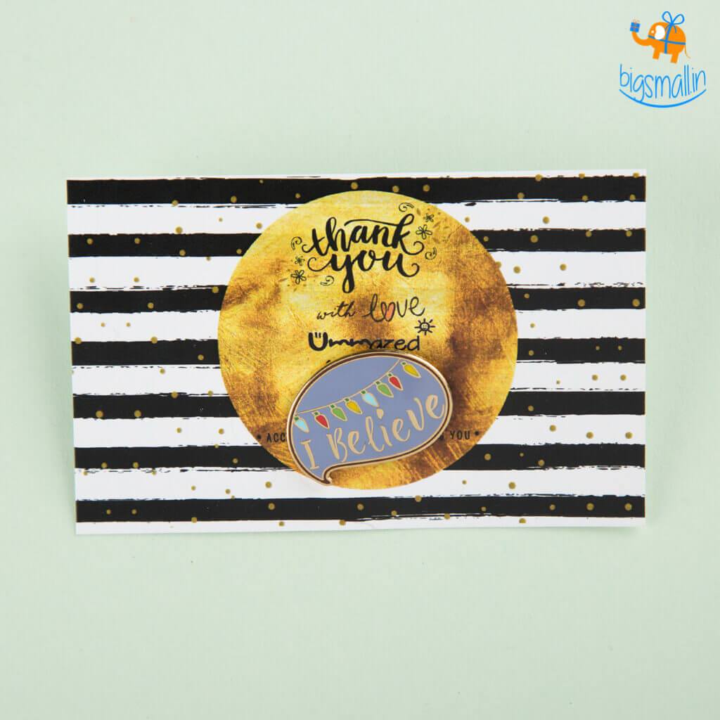 When you're running a little low on motivation, this lapel pin will remind you to pick yourself up and get.things.done! It is gold and incredibly classy to look at. designed with the motivational message, "I believe". It is a super stylish gift for anyone you know, in school or at the workplace! This adorable little pin can brighten up any one's day and is an excellent motivational tool for a team or an individual. It stands as a positive reminder.