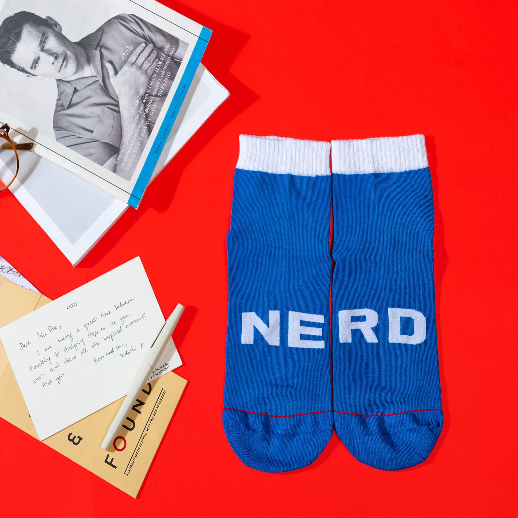 It’s cool to be a brainy nerd! Let your nerd flag fly in these nerdy socks! One whose unbridled passion for something defines who they are as a person without fear or other people’s judgment. These nerd socks for all kind of smarty pants nerds- whether you love maths, science fiction or video games Because nerds like us are allowed to be unironically enthusiastic about stuff… Nerds are allowed to love stuff like -jump -up -and -down -in -the -air -can’t -control - yourself -love -it. Hank, when people call you nerds, with these nerd socks, mostly what they’re saying is, “You like Stuff” which is not condescending at all. Like you are too enthusiastic, about the miracle of human consciousness.