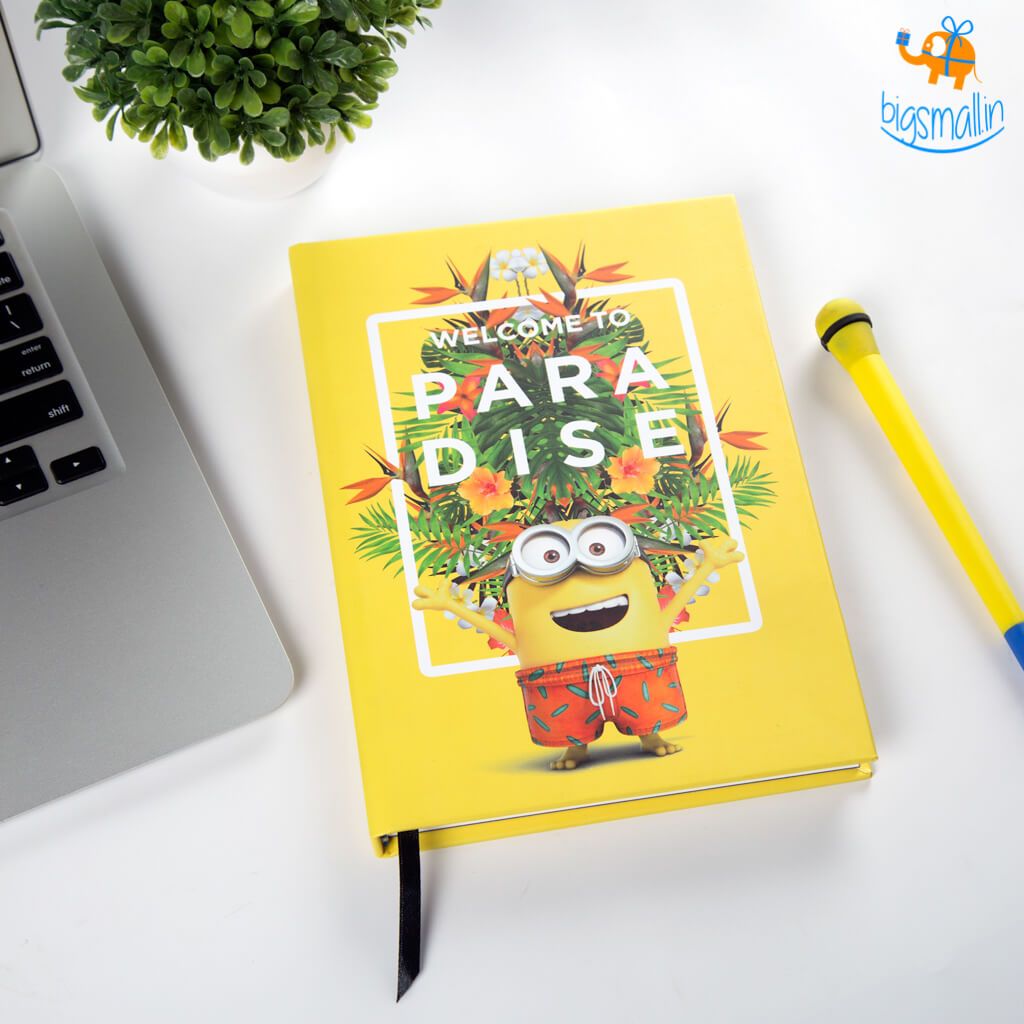 There's no woe in paradise and this notebook is a know it all. Travel to paradise with the minions via this bright yellow note book. With its 144 pages, the notebook is prudent to fit it all your ideas. Bring out your inner minion with this Paradise notebook.