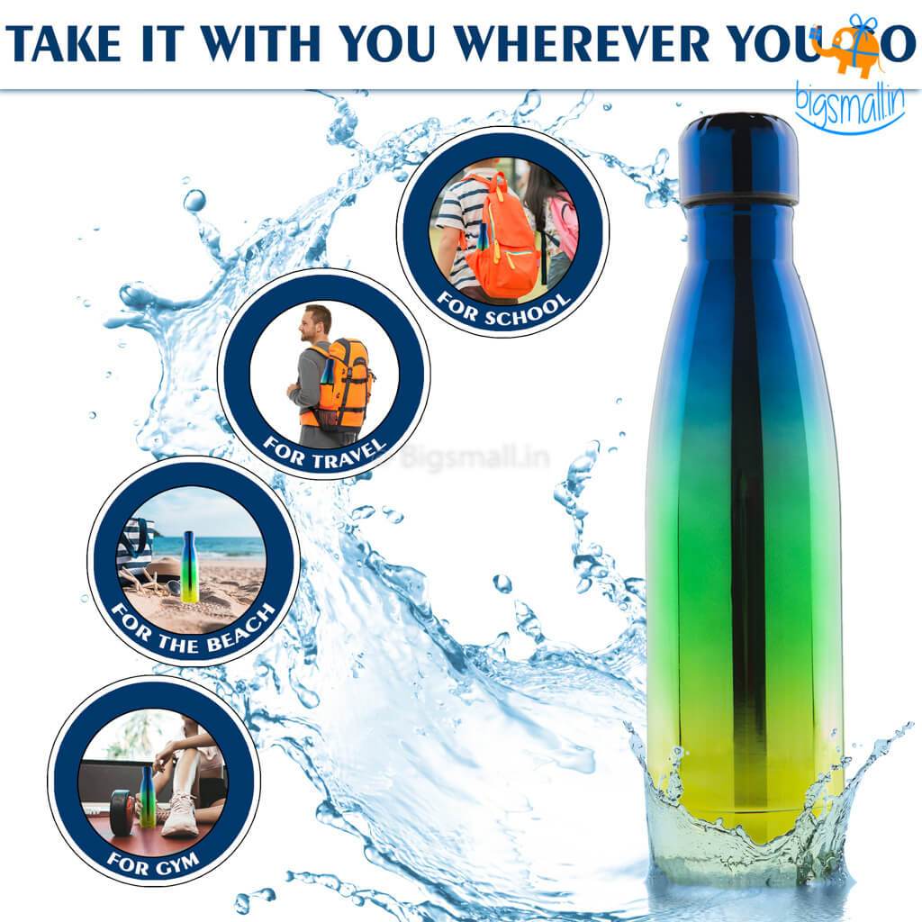 Nothing screams like winter like hot drinks. To preserve the temperature of your drinks we present this stainless steel bottle with impeccable rainbow-colored steel. The bottle allows for hot teas, soup, coffee, and other blends to remain consistently hot for a long time. Also cold water, smoothie, soft drinks, etc. will be cold for a long time. The bottle is made of stainless high-grade steel inside and outside, therefore it's unbreakable. The smooth surface makes it easy to clean hence it's hygienic.