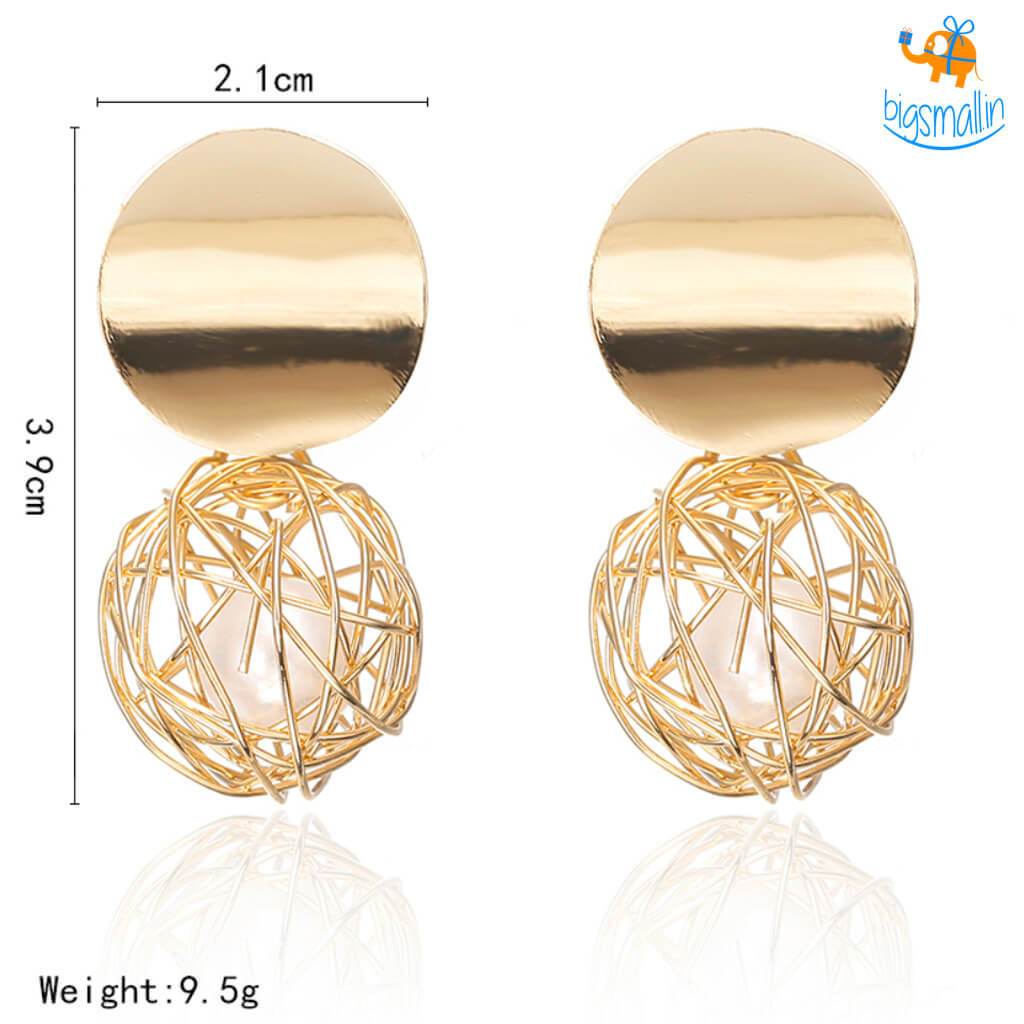 - Pearls encased in golden wire mesh
