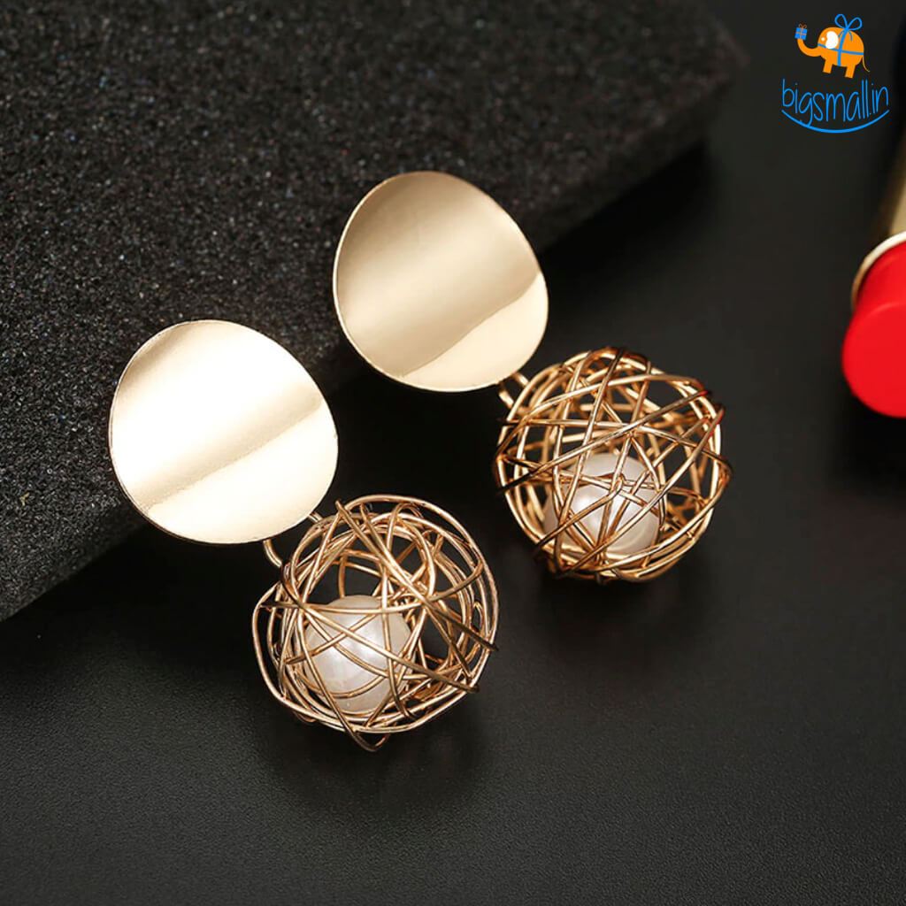 Yes ladies & gentlemen, presenting the snazziest piece of bling for the divas in your life, the Shiny Ball Earrings which are designed to delight. Every diva would agree, a cool snazzy piece of bling makes life a little more savory. Wearing a classic black gown for an evening cocktail party, sport these Shiny Ball Earrings with encased pearls. The golden concave reflectors add the extra glitz to the pair of danglers.