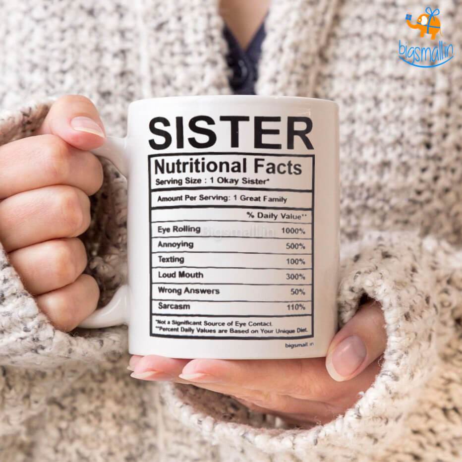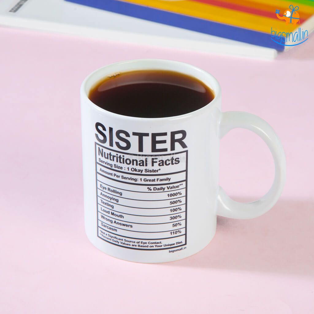 A true sister is made up of many constituents - ranging from eye-rolling to texting, and from sarcasm to loudmouth. But however annoying she may be, you still love her unconditionally - it's what makes her so precious. This Raksha Bandhan, cherish your sister with the Sister Nutritional Facts Mug - with a set of hilariously relatable nutritional facts of every sister listed.