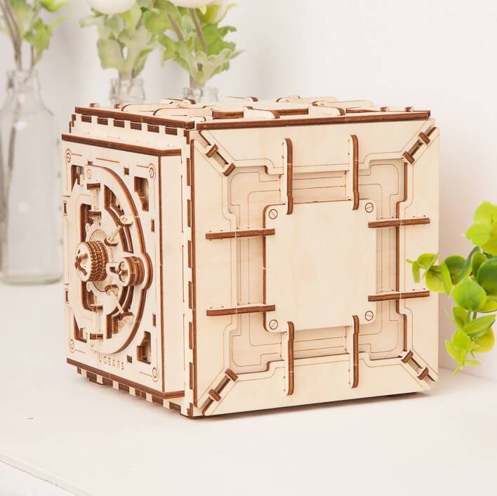 Keep your treasures stashed away safely in the DIY U Gears Mechanical Safe Puzzle. UGears Safe is DIY heaven, and it draws its design inspiration from a real-life safe closet box.